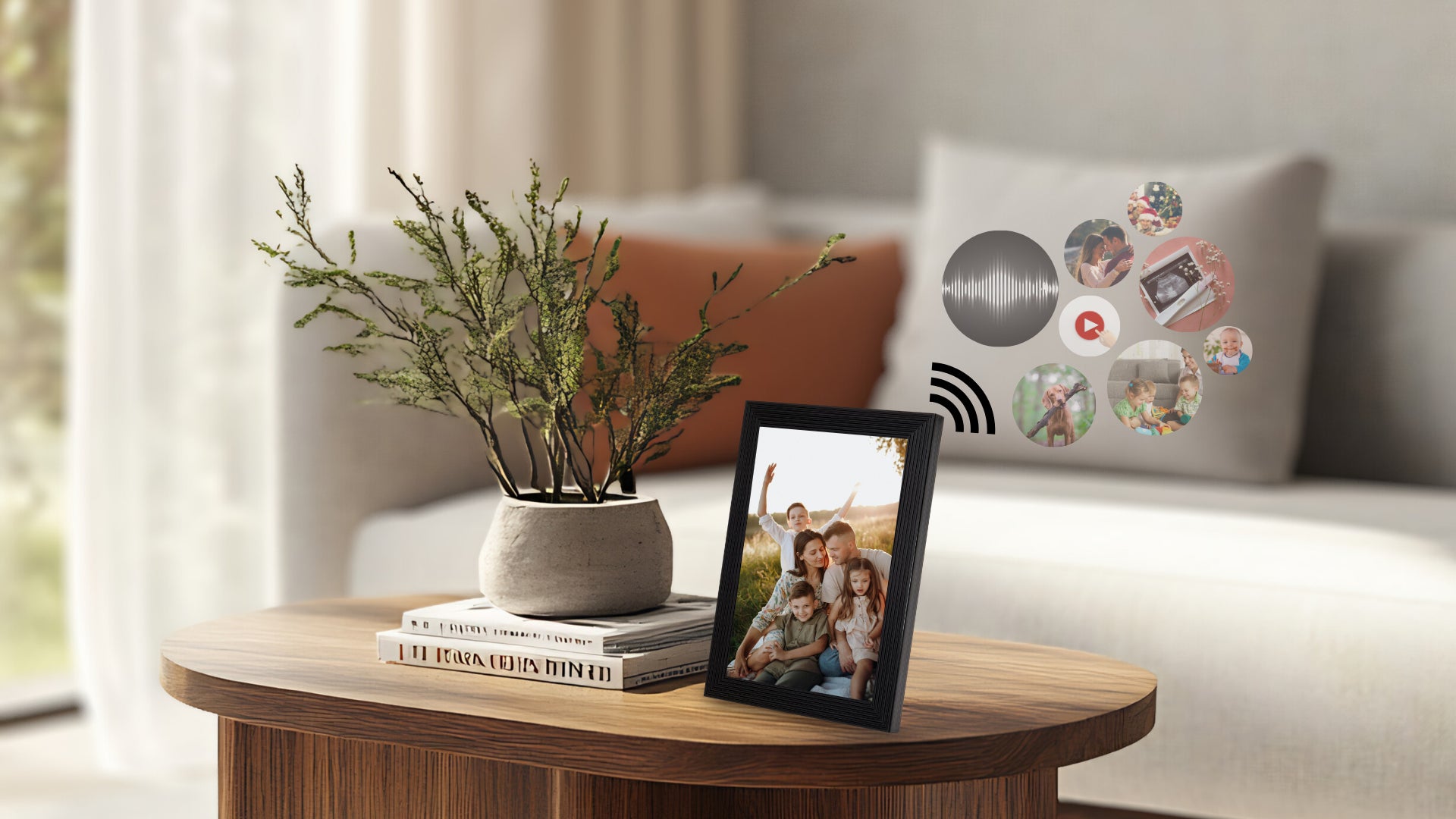 Pas besoin d’être un expert en technologie pour profiter de ton cadre connecté : un simple geste suffit pour révéler la magie.